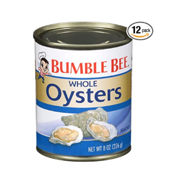 Bumble Bee Premium Select Whole Canned Oysters, 8 oz Cans (Pack of 12) - Ready to Eat