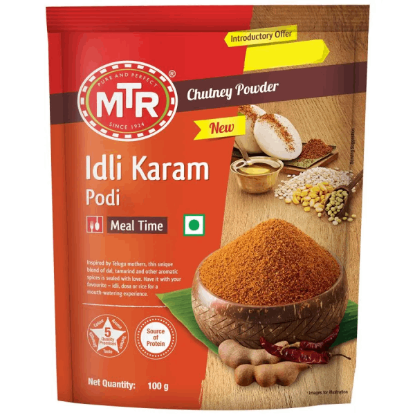 MTR Idli Karam Podi is a delicious chutney powder that can be used alongside rice, Idlis, or Dosas. The chutney powder is inspired by the state of Telugu states and its moms. It is a traditional preparation that has a unique blend of dal, tamarind, and spices which are added in particular proportions to make it a great combination to go with various foods. Add it to your favourite steaming hot food item along with a bit of ghee to feel all the flavours filling your mouth.